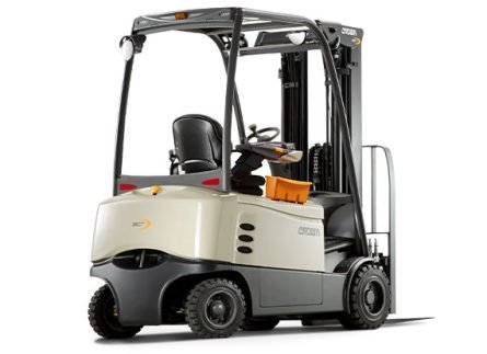 Crown's C-B Series 8,000 to 10,000-pound electric, pneumatic tire forklifts feature the ruggedness and durability of internal combustion forklifts with zero carbon emissions. -