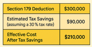 Let’s say your company purchases $300,000 worth of qualifying material handling equipment in 2025: